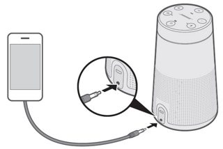 Sie können viele verschiedene Geräte mit Ihrem Bose Lautsprecher verbinden, sogar Geräte ohne Bluetooth-Funktion. Sie können diese Geräte an die 3,5-mm-Eingangsbuchse auf der Rückseite des Lautsprechers anschließen.